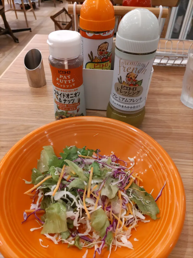 サラダはおかわりできて、いろんなドレッシングをかけられるので、お気に入りドレッシングと出合えるチャンスですね。