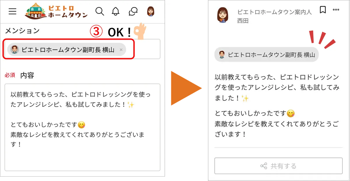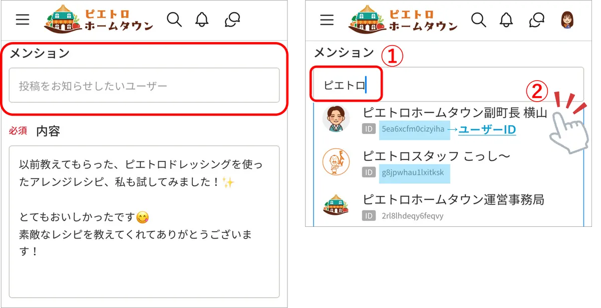 ピエトロホームタウンがより使いやすく、たのしくなる便利なメンション機能の使い方を紹介します!️