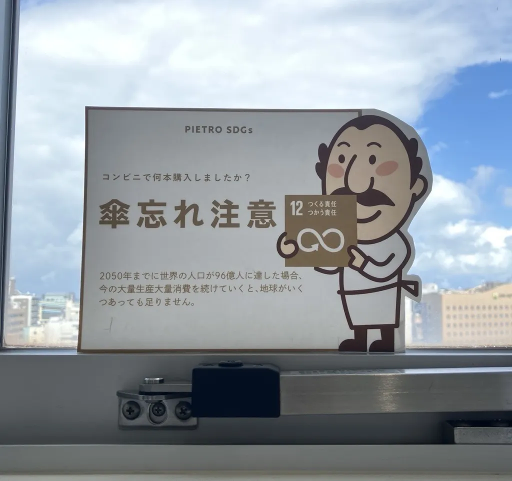 ピエトロおじさんに見守られながら、私たち社員はSDGsを達成する行動に取り組んでいます!!