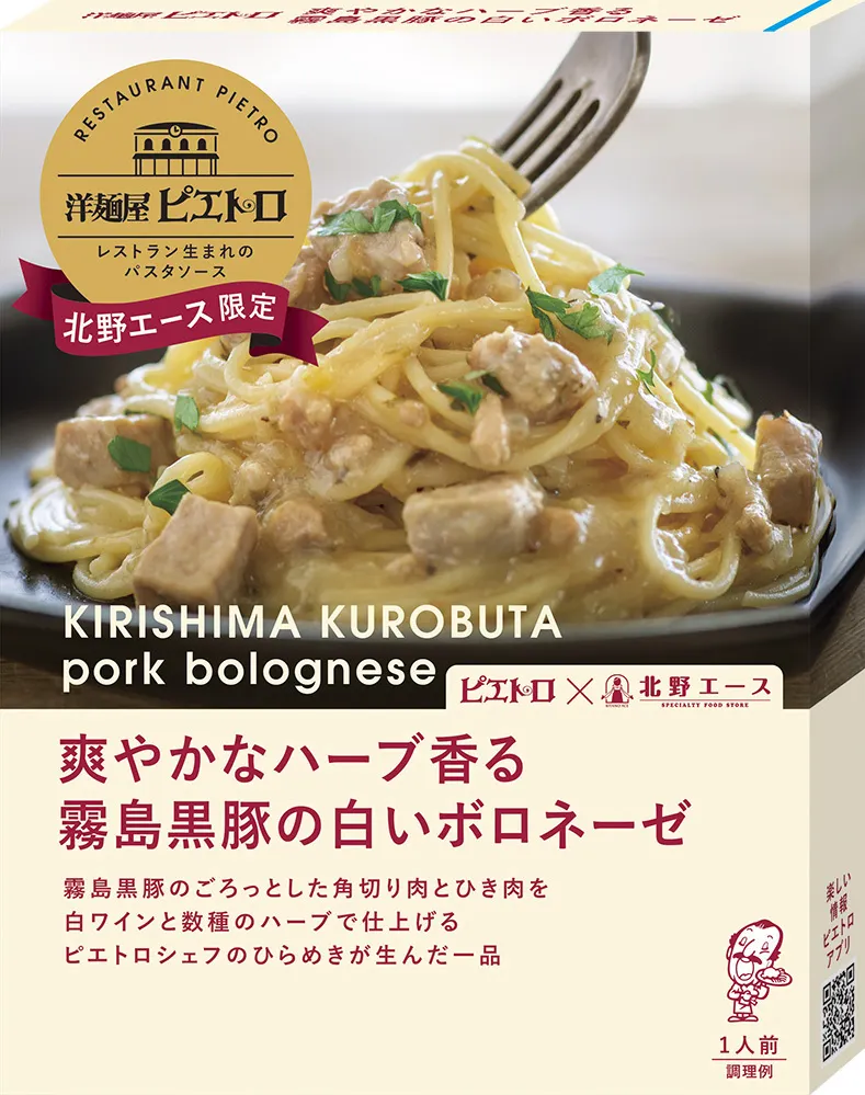 【新商品発売のお知らせ】ピエトロ×北野エース共同開発商品 「洋麺屋ピエトロ パスタソース 爽やかなハーブ香る霧島黒豚の白いボロネーゼ」