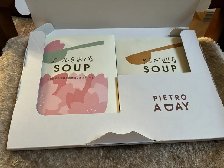 誕生日にもらったピエトロファンポイントあり、先日ポクテさんが1点から送料無料だと教えてくださったので、オンラインストアでスープを買いました!義父は4月、義母は5月が誕生日なのでいくつかは義父母にプレゼントしようと思ってます!