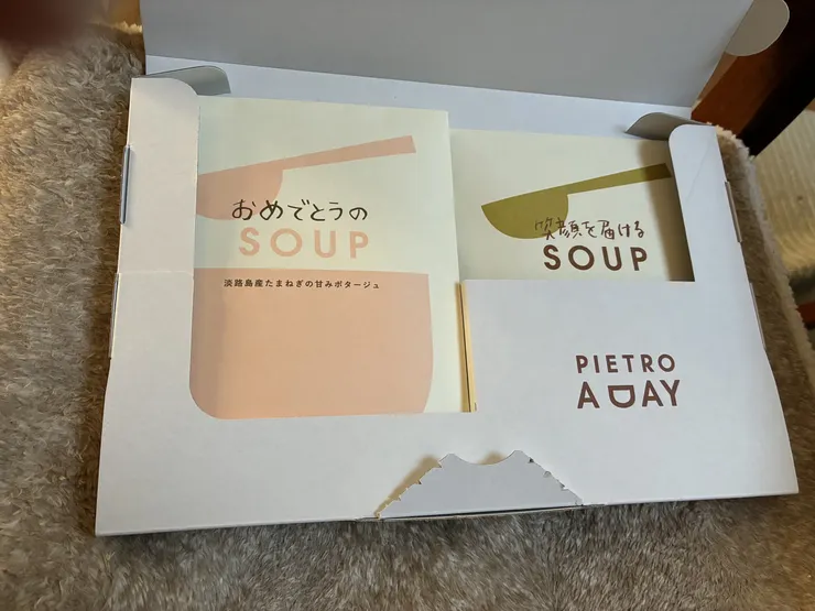 誕生日にもらったピエトロファンポイントあり、先日ポクテさんが1点から送料無料だと教えてくださったので、オンラインストアでスープを買いました!義父は4月、義母は5月が誕生日なのでいくつかは義父母にプレゼントしようと思ってます!