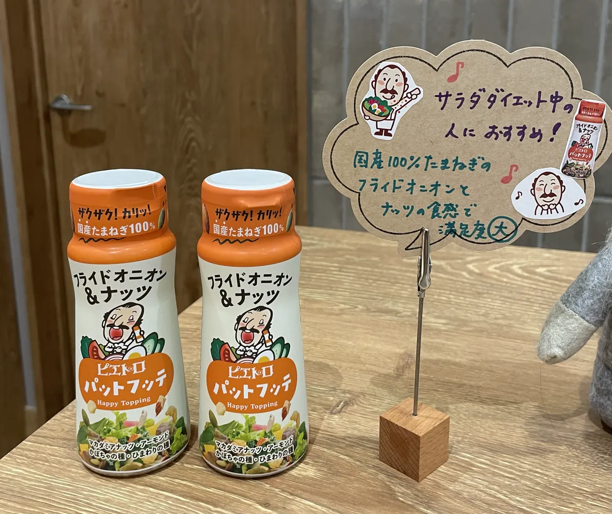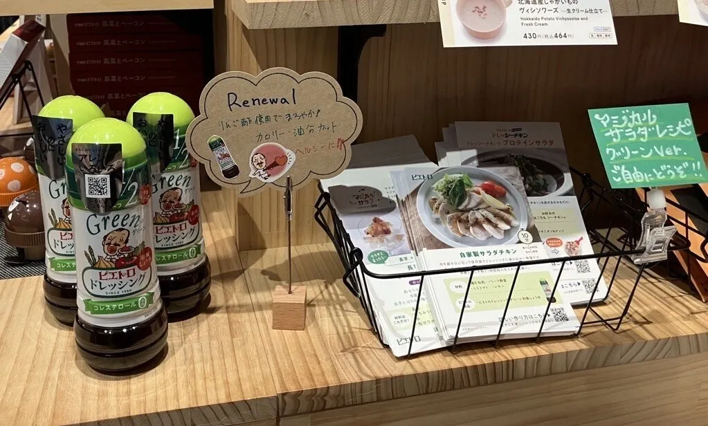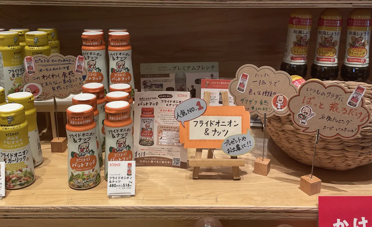 2025年7月26日(土)に開催した、「ファンミーティング×新商品体験会 in 福岡」のワークショップで作成した、9月にリニューアルした「ピエトロドレッシング グリーン 和風しょうゆ」「パットフッテ フライドオニオン&ナッツ」のPOPを、福岡県内のピエトロレストランに設置しました~✨️