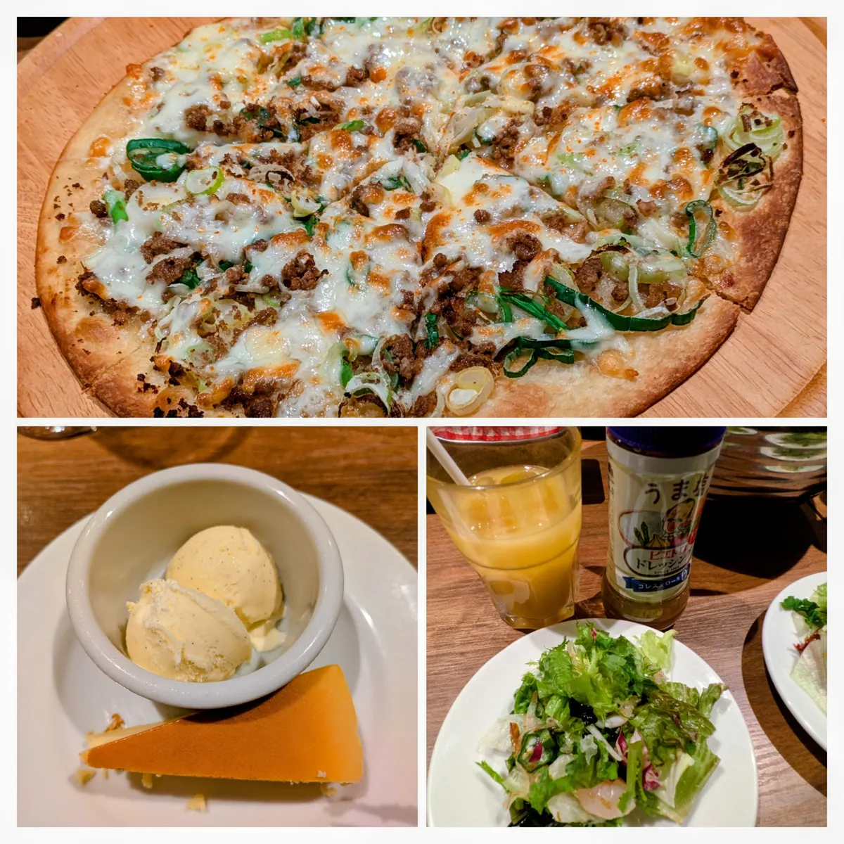 ピザ🍕ねぎとひき肉🍕皆さんの大絶賛の美味しさでした☆チーズを挟んだ熱々パン「ボルケーノ」も美味しかったです…写真を撮り忘れました…