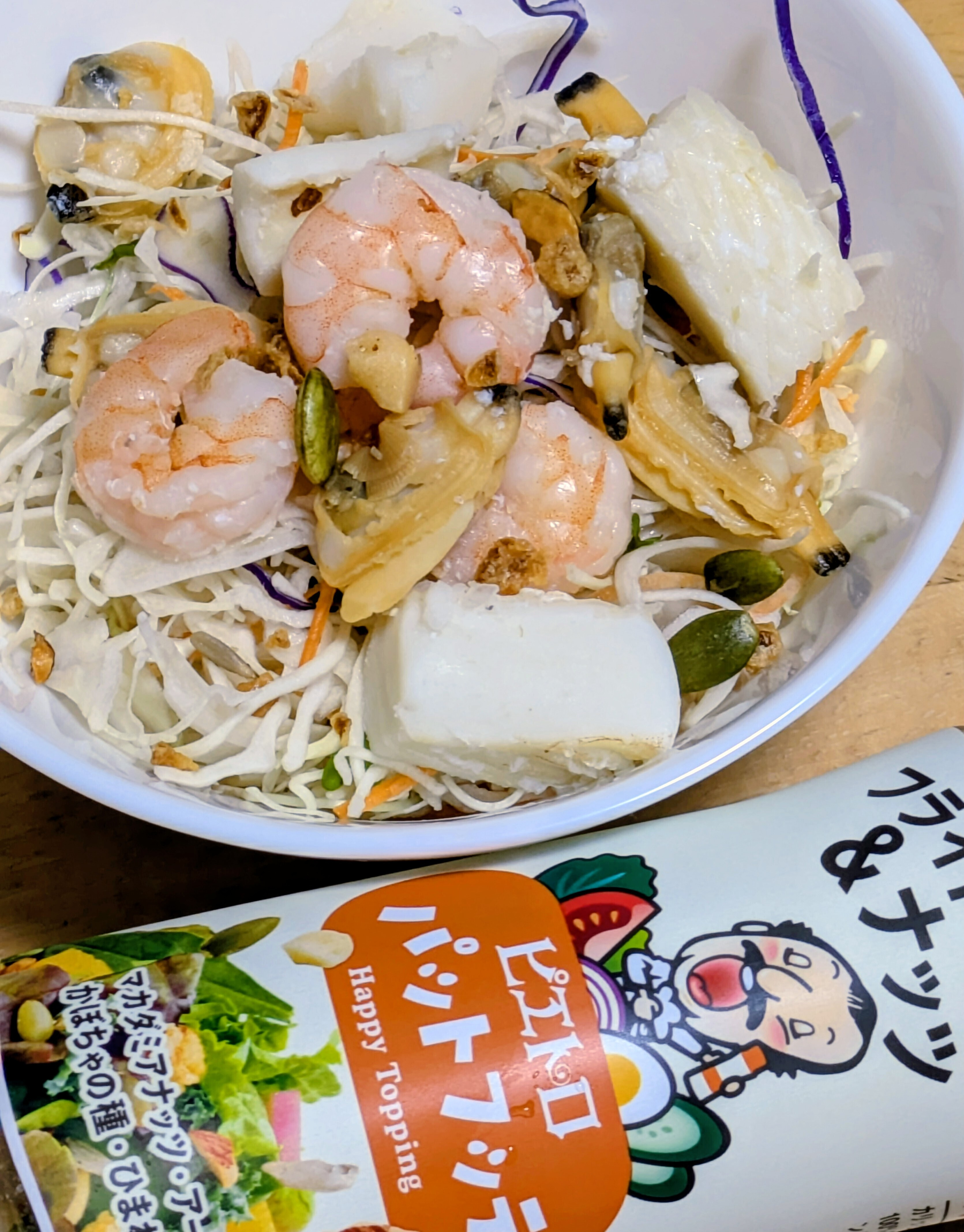 投稿を表示サラダなのか?エビが存在感大きいぞ🤭