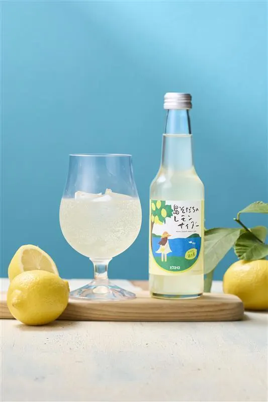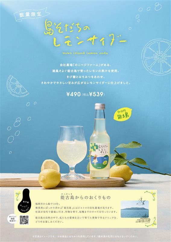 みなさま、能古島の自社農場で育てたレモンでつくった「島そだちのレモンサイダー」をたのしんでくださいね🍋