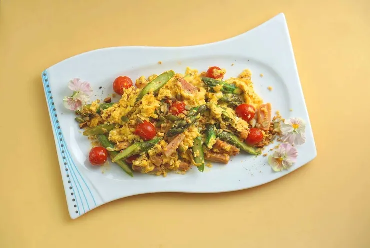 アスパラとミニトマトが鮮やかでアクセントになりますね。