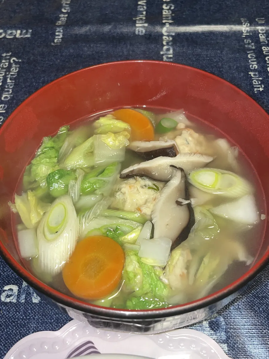 最後に、鶏団子と野菜の鶏がらスープ✨️