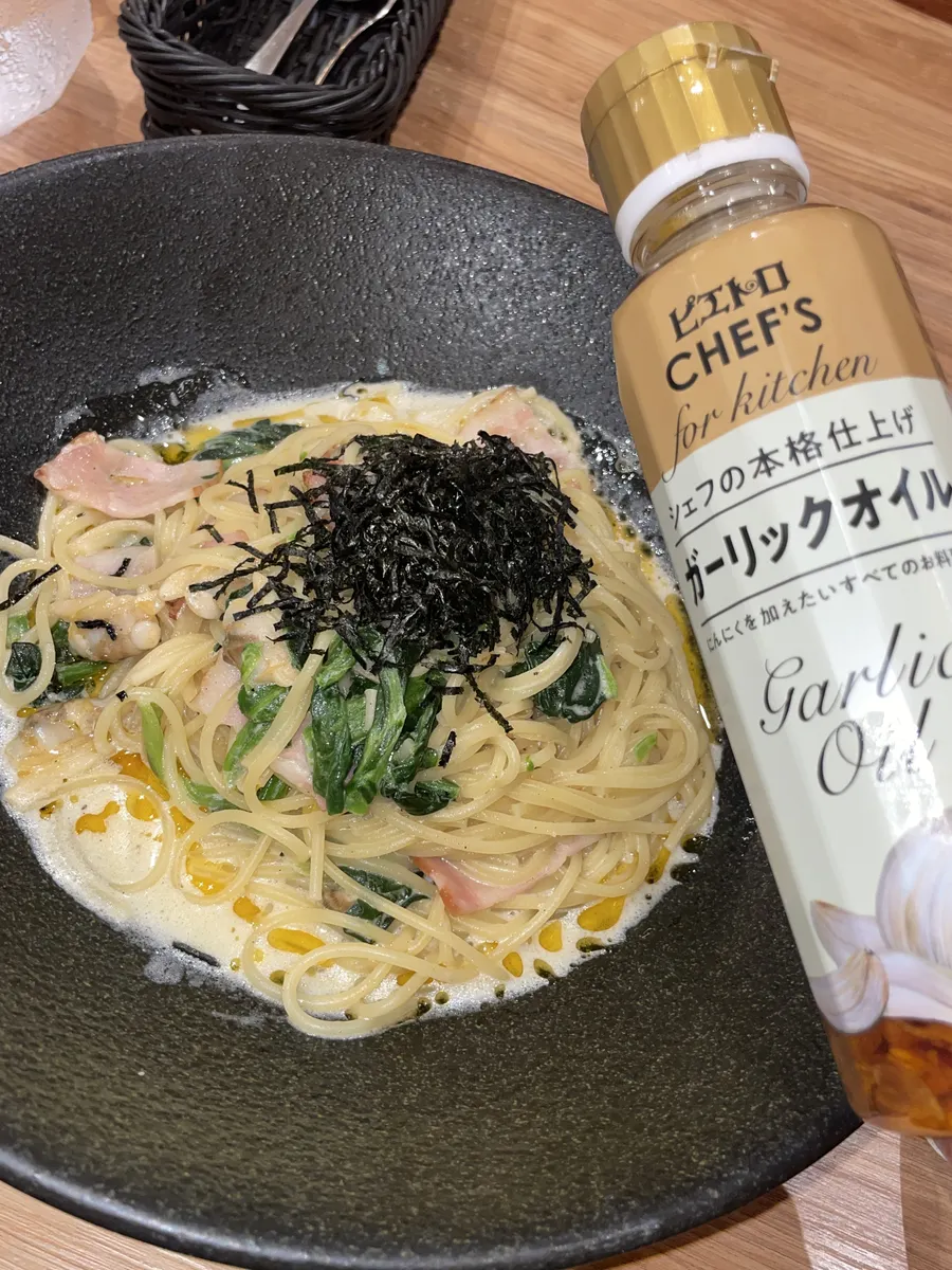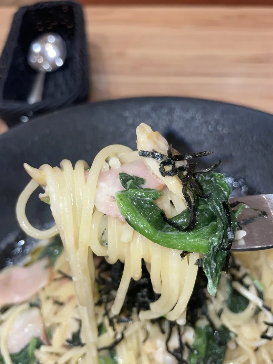 そしてあさりとベーコンにほうれん草トッピングおいしそうですね!