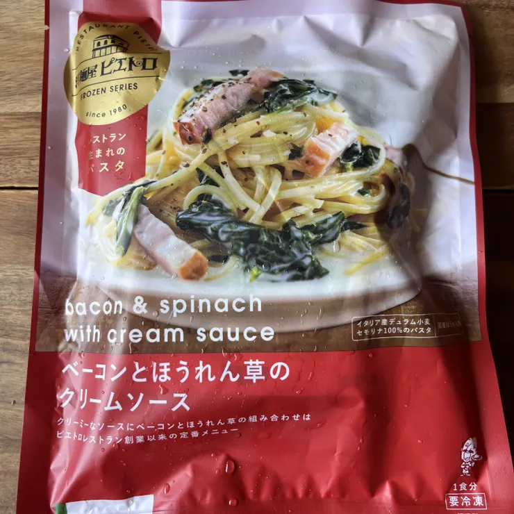 バターと生クリームで仕上げた濃厚なクリームソースに、国産ほうれん草やベーコン