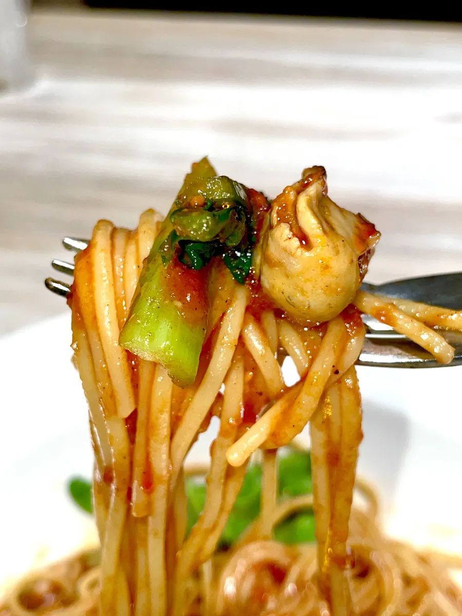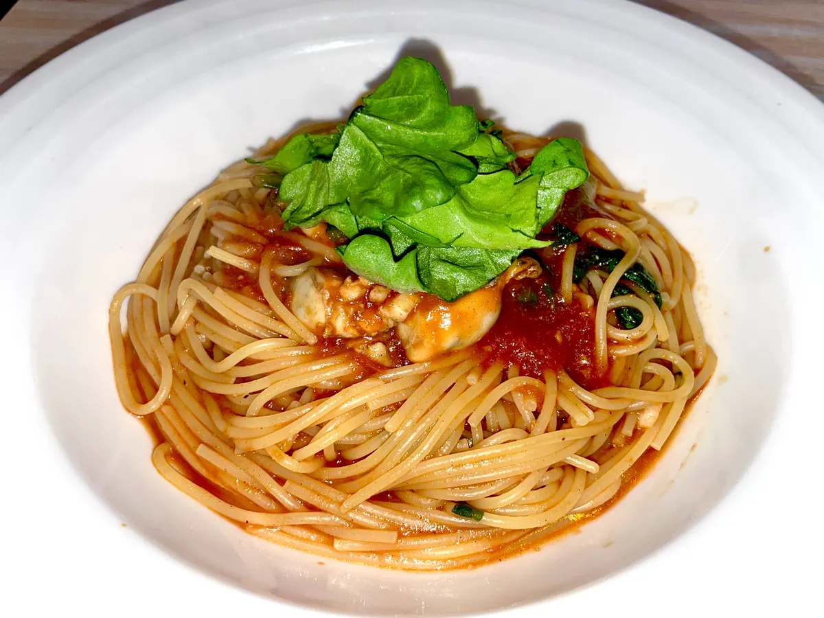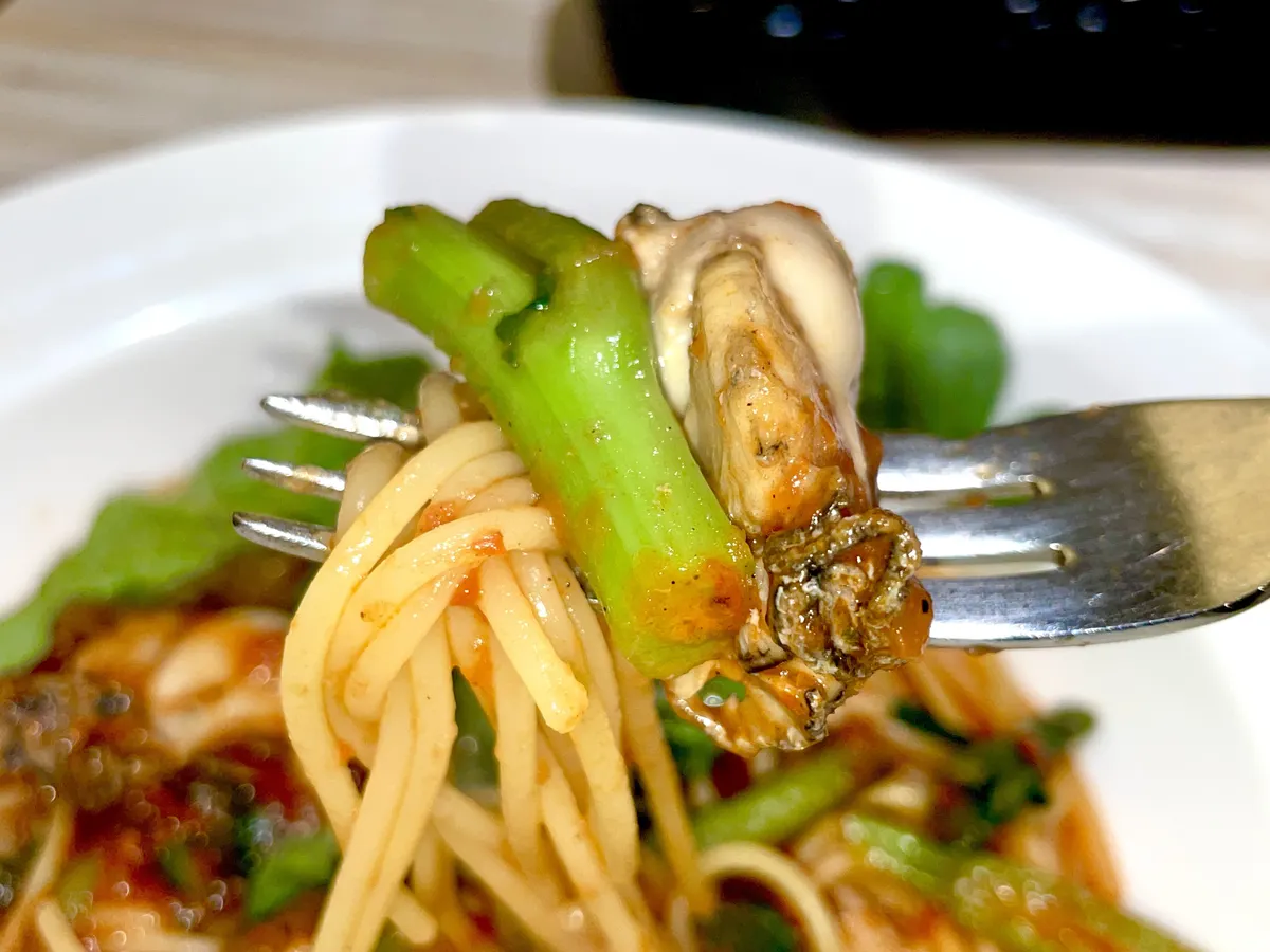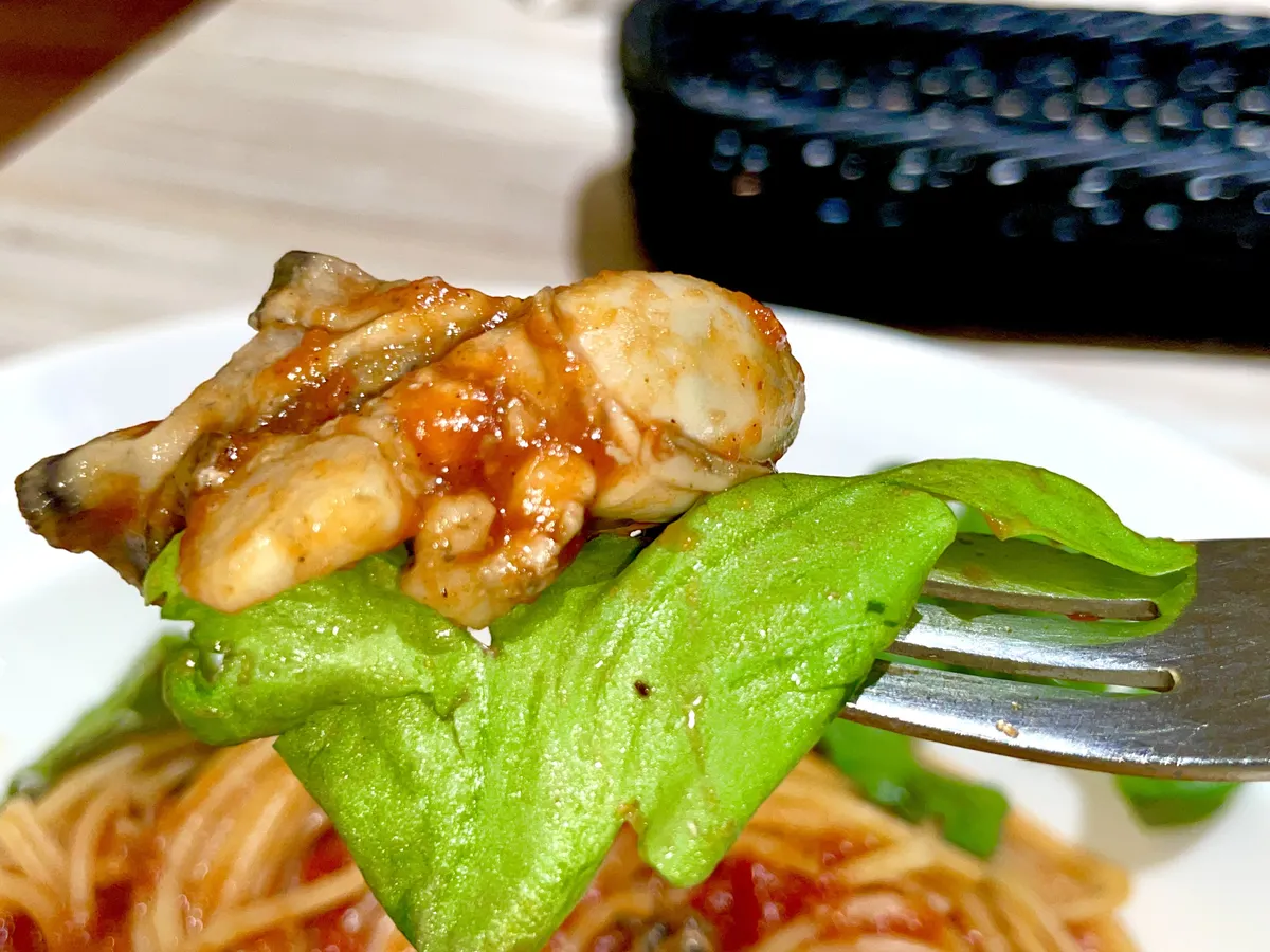 【牡蠣と春菊の旨みたっぷりトマトソース】