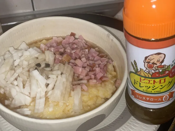 美味しそう!自動調理器なんてお持ちとは。私もドレッシングが美味しいから白ご飯にドレッシングで食べたことあります。ドレッシングの酢が味を引き締めてくれるんですよね