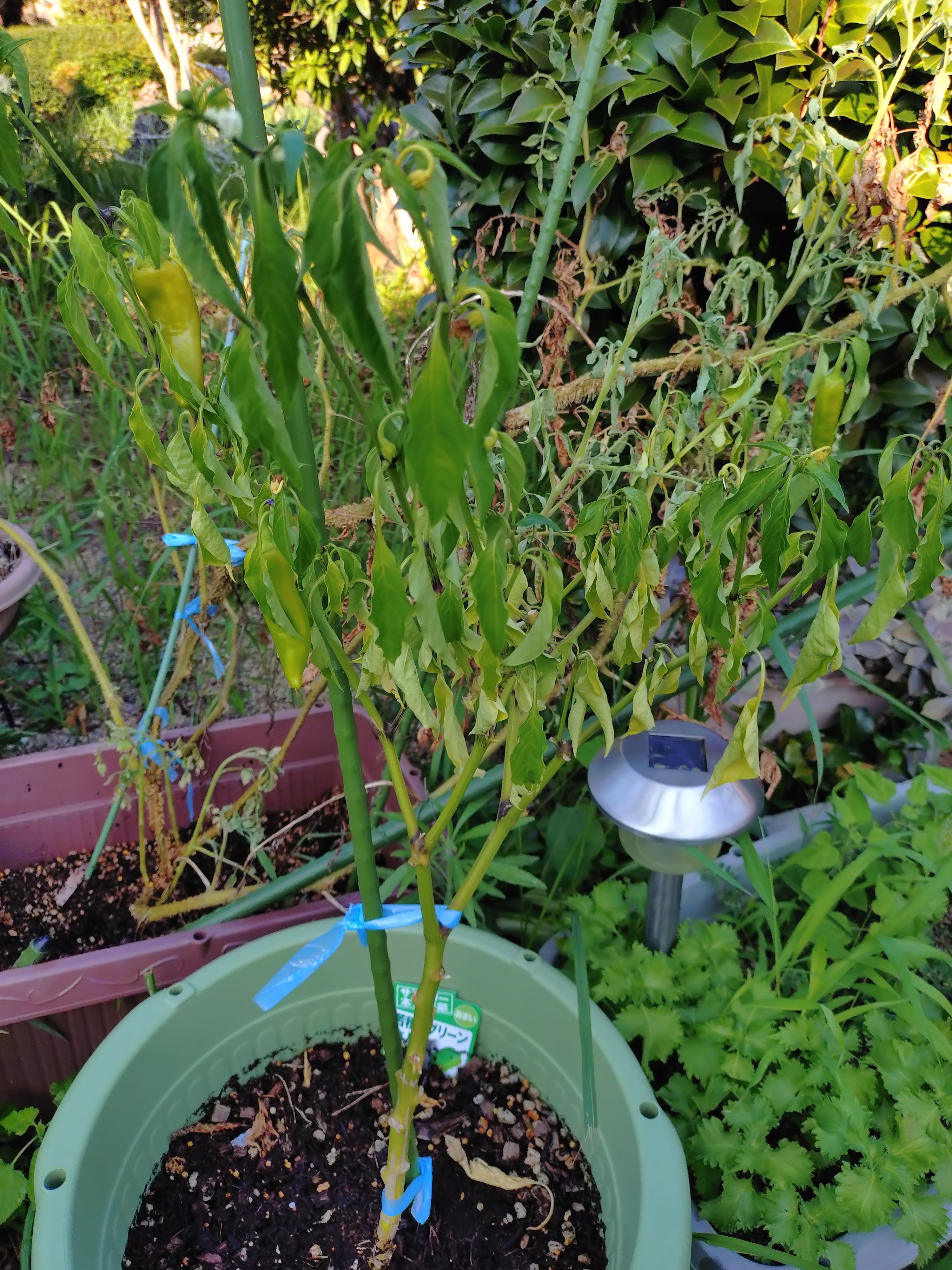 うちのピーマンも一時期葉っぱが元気なく下を向いていた時期ありましたが、追肥をしてあげる水の量を増やしたら元気になったので見守っていきましょう🫑