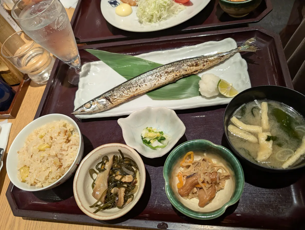 先輩は秋刀魚定食、私は生姜焼き定食で頂きました😋