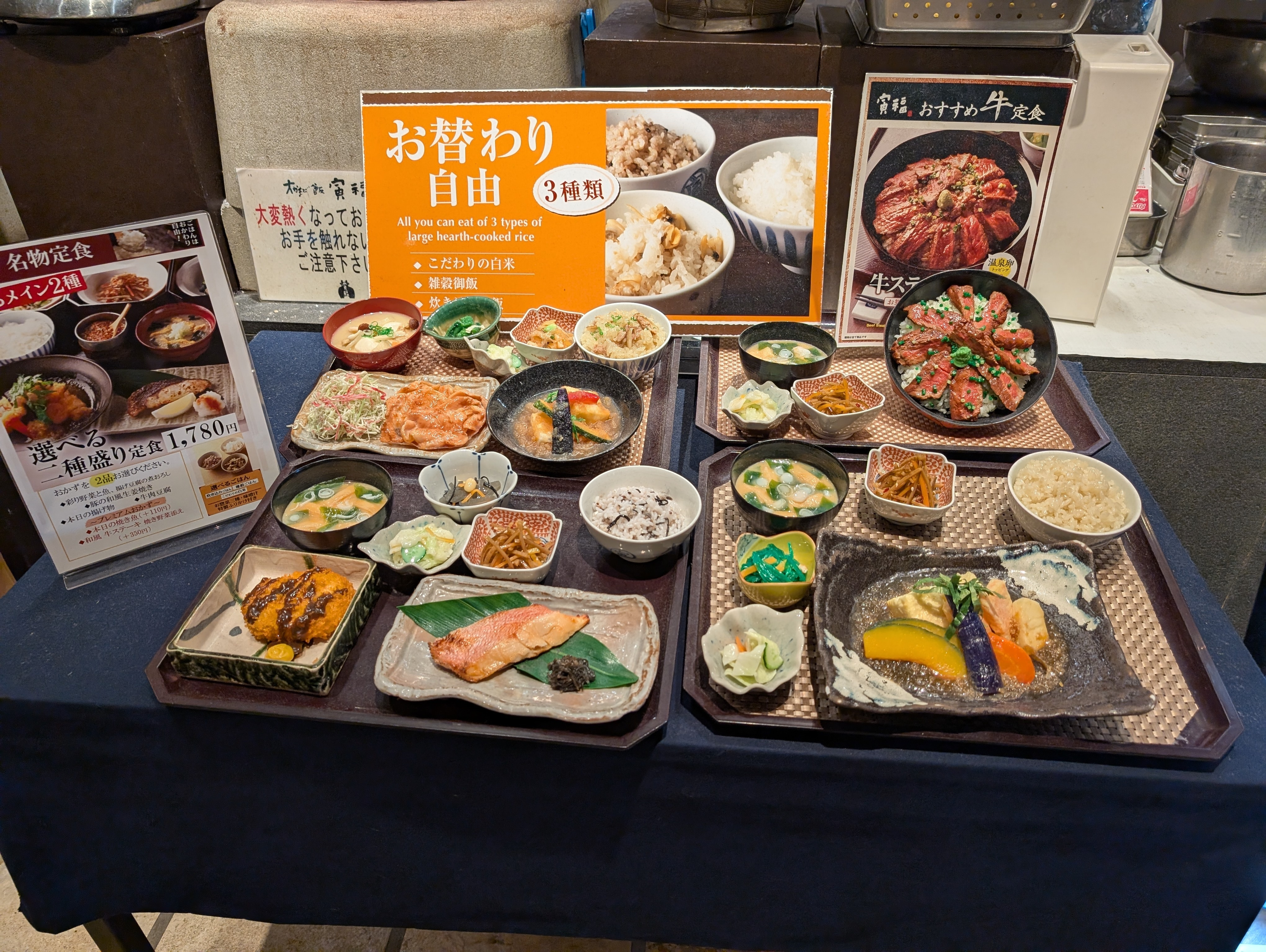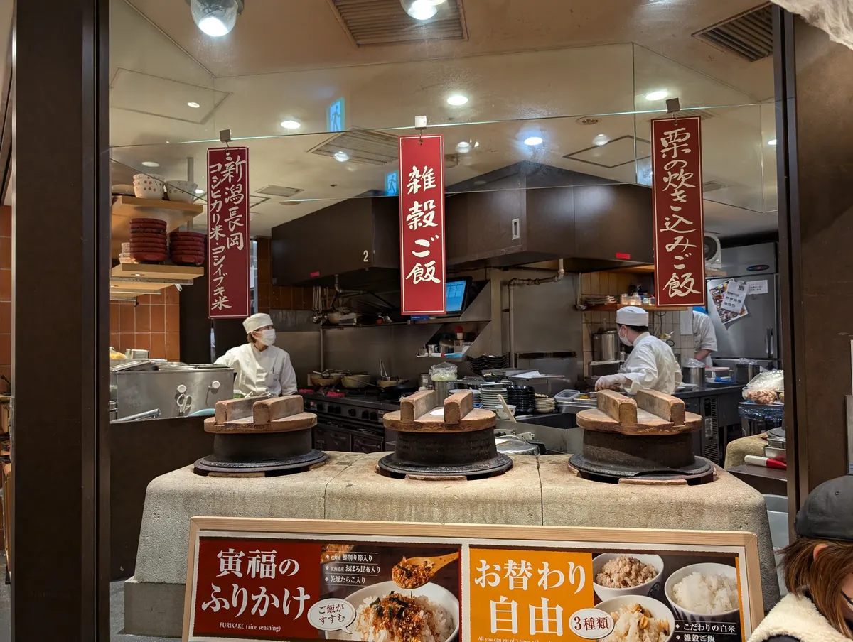 何種類か定食がありますが全てに釜で炊いたご飯3種類がおかわり自由✨✨✨