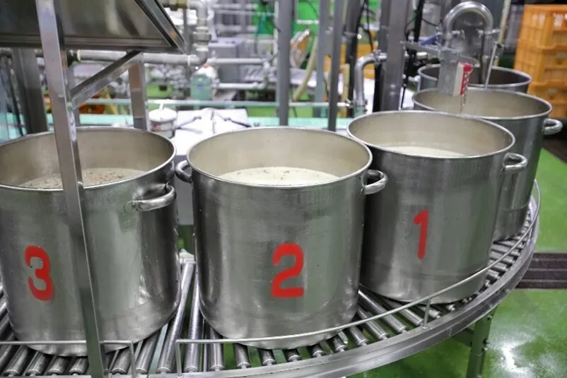 ピエトロドレッシングは、大量生産では作れない「おいしさ」を守るために、レストランの厨房で使うサイズの倍の大きさの“寸胴鍋”で、一日に何度も『少しずつをたくさん』繰り返して作っています!