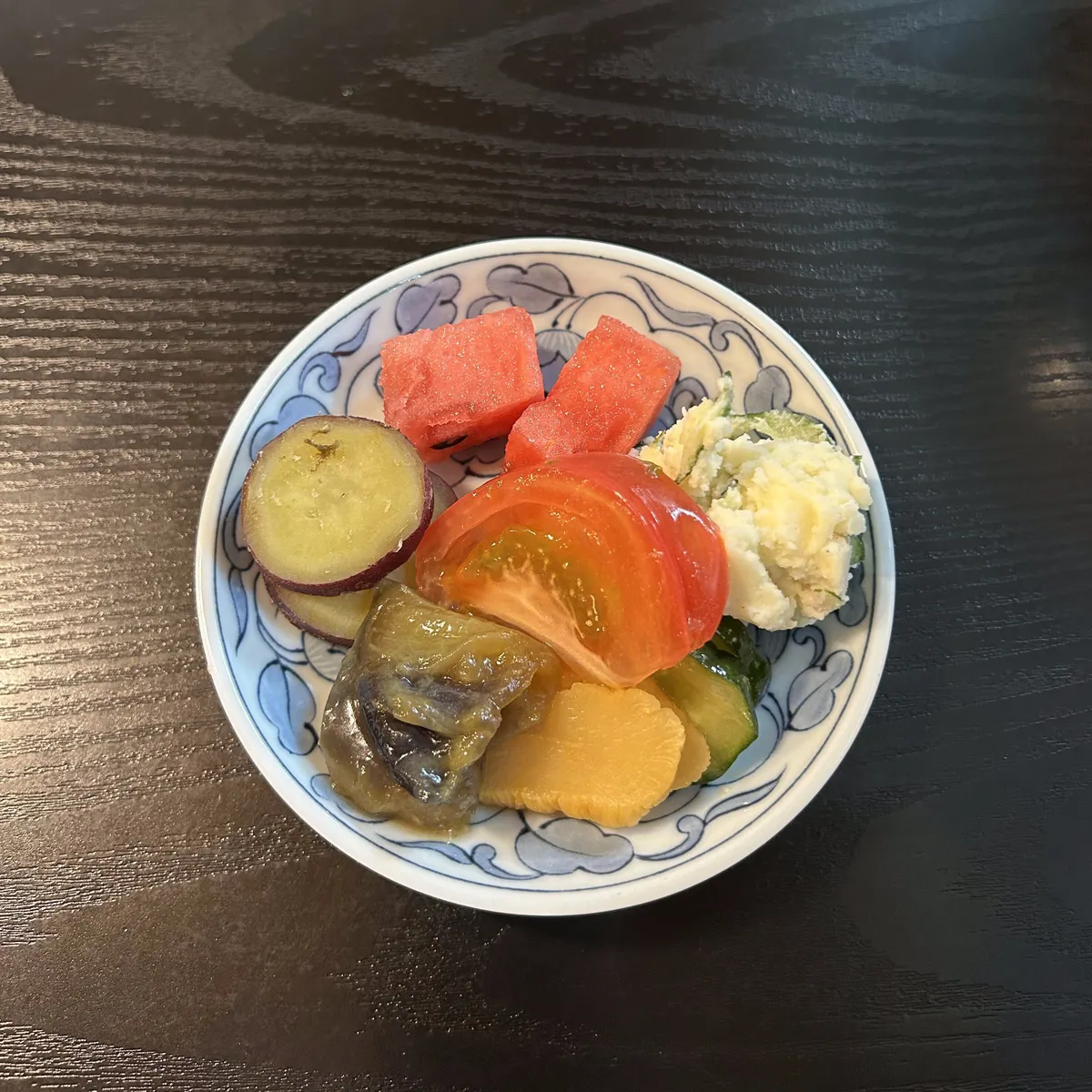 お店の一角に、お漬物やお惣菜が並んでいて、セルフサービスで楽しめます…!