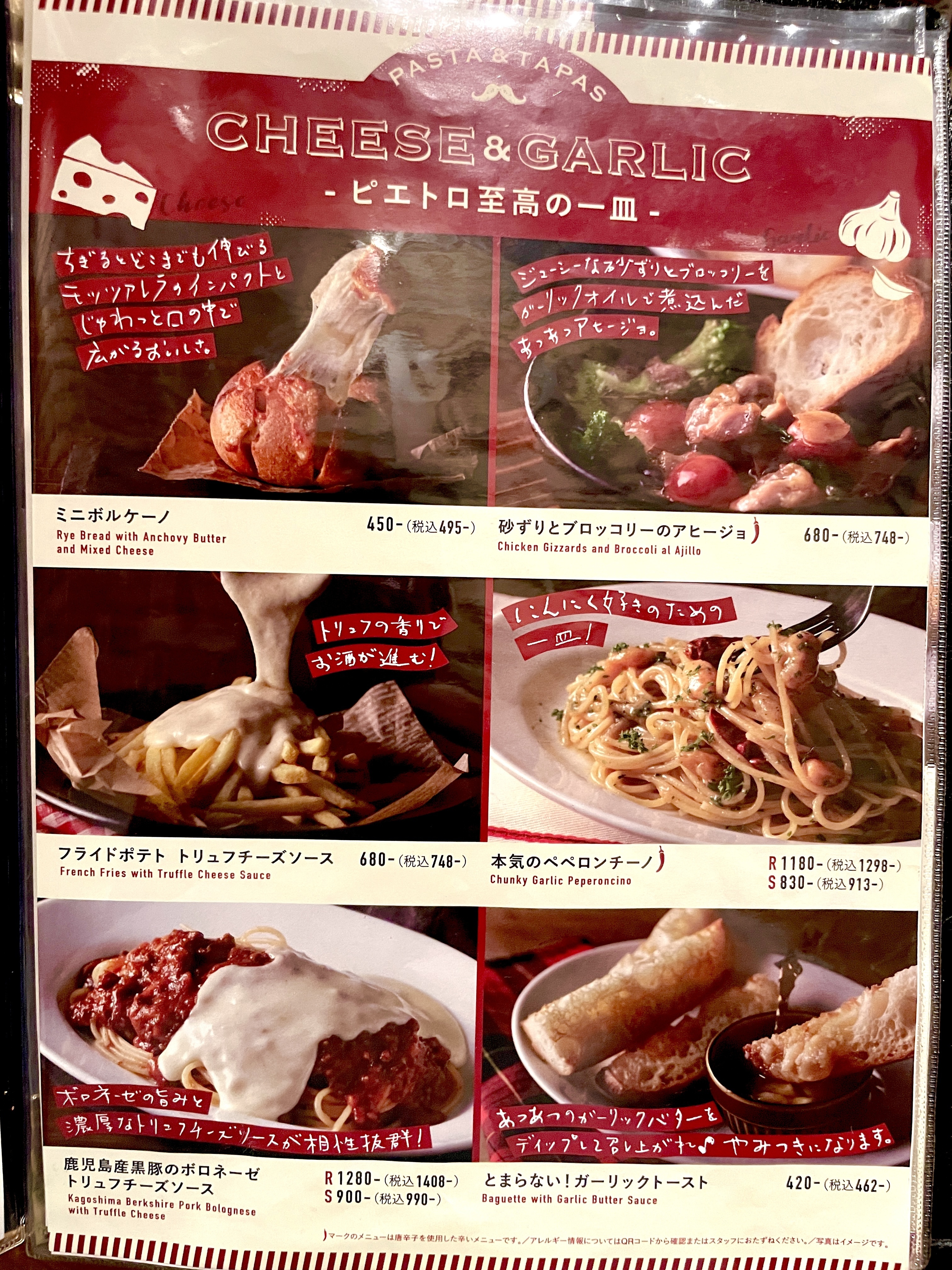 ピエトロの代名詞「パスタ」や、サラダなどを中心としたメニューに加え…前菜、おつまみ、小皿料理などのここでしか味わえないメニューを揃えた「タパス」が充実していました✨️