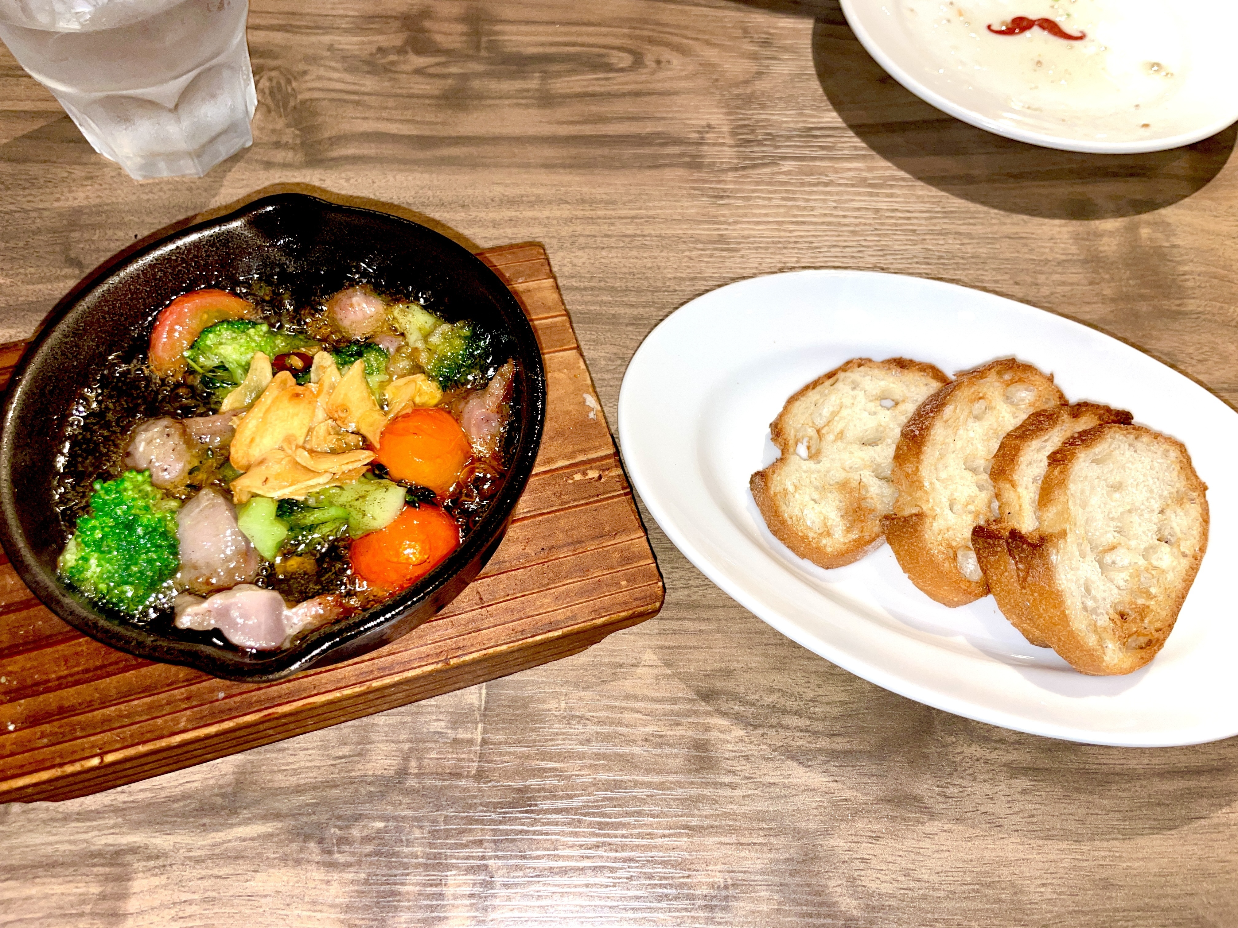 別のひと口で…ミニトマト、ブロッコリー、ガーリックと、野菜のみの組み合わせもまたおいしかったですね✨️