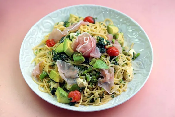 菊菜とアボカドのクリームチーズスパゲッティ