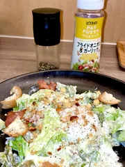 【107日目】シーザーサラダにはもちろんブラックペッパーもかけてパットフッテもかけます✨️ 至福の時間だぁ〜🙌✨