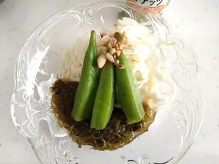 77日目キャベツにめかぶ酢 【77日目】 会員様から教えていただいた蒸しキャベツにもずく酢を食べる食べ方 モズクがなかったのでメカブの甘酢とパットフッテをかけて頂きました レンチンしたキャベツはしんなりメカブの甘酢とパットフッテを混ぜていただきましたさっぱり美味しくいただけました、ありがとうござい