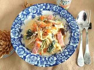 97日目カルボナーラ 【97日目】 カルボナーラにパットフッテをかけて頂きました