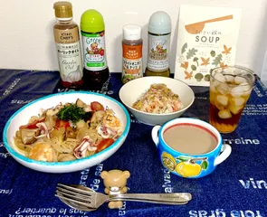 ポクテ様✨️ 市販のサラダに、カニカマを加えて 混ぜ合わせるだけで本当に簡単なのに とても美味しいコールスローです♪ ピエトロドレッシングは味が良いので シンプルにドレッシングだけの調味で 仕上げたのもポイントですよ☝️✨️ パスタは 具材をガーリックオイルで炒め… 調味はグリーン&塩コショウで♪