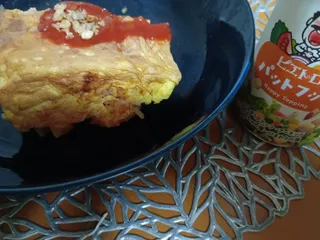 娘が学校を休んでいたので、玉子焼き器で簡単なオムライスを作り私は仕事へ。多めにできてたオムライスが半分残っていたので、パットフッテをかけてみました😊