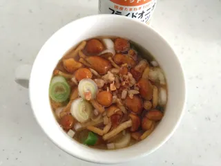 112日目なめこのおみそしる 【112日目】 なめこのお味噌汁にパットフッテを入れましたフライドオニオンがお味噌汁をさらにおいしくしてくれました