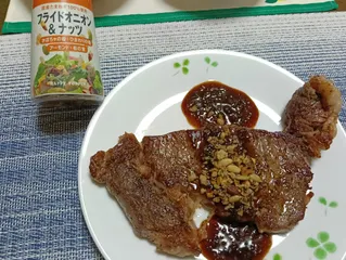 ステーキにたっぷり 【16日目】ステーキソースの味がよりアップして美味しいですよ。