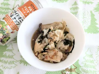 晩ごはんのサラダに✨ 【17日目】晩ごはんのサラダにパットフッテをかけました😄主人が近所の担々麺のお店の麻婆豆腐を買ってきてくれたので、麻婆豆腐定食にしました😋鯵の骨せんべいは、捌いて1週間位干して揚げ焼きしました😋鯵や鰯がお勧めです💓