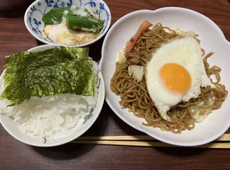 焼きそば目玉焼きのせ!トロトロ御飯 のり弁みたいにオカカと昆布にしようか迷いましたが、御飯にトロロを流し込み海苔を巻いて食べることにしました(^^)焼きそばの目玉焼き!上手くできたので上機嫌です(笑)お昼はキムチチャーハンとサラダ🥗‼️少しずつ秋🍂っぽくなってきましたね〜