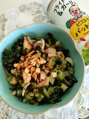 大根の葉と鶏皮に83 【83日目】 葉付き大根の葉と鶏皮をガーリックが合うこと