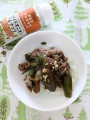 ソーニン使って冷麺 【11日目】グリーンホルンを豚肉で巻き、焼いてのせてみました。パットフッテをフッテ