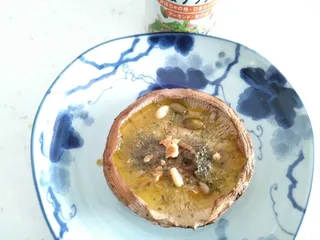 73日目ジャンボしいたけ 【73日目】 大きな手のひらサイズのしいたけにバターとハーブソルトをかけて焼き パットフッテをかけて頂きました 肉厚で美味しかったです