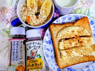 トーストにガーリック、豆乳ヨーグルトにフルーツナッツ 【113日目】それぞれあいますね