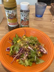 4連休最終日、次郎丸店でおかわりサラダ✨️ 【48日目】秋冬限定の和風しょうがドレッシングにパットフッテと共に✨️ 美味しいなぁ(*´~`*)ŧ‹"ŧ‹"ŧ‹"
