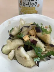 🍆塩もみ 【10日目】朝、収穫した🍆に塩をふり、軽く搾り、かけました。ガーリックとのバランスが美味しい