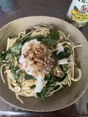 🍄きのこパスタ🍝とろろがけ 【58日目】どろろとチップがよくあいます