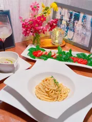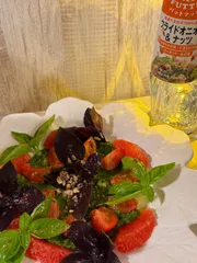 ディナー🍽️ 育てたバジルとトマトが🍅🌿最高に美味しい😋