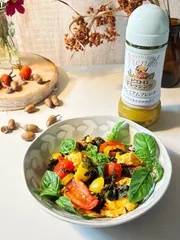 炒め物の味付け、これ一本♪ バジルと卵とトマトとパプリカを炒めました。味付けにはピエトロドレッシングのみ。仕上げにまわしかけて。美味しい組み合わせでした