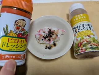 【68日目】今日の夕飯はレンチンして「ピエトロドレッシング 焙煎香りごま」で和えたチンゲンサイにパットフッテをかけて食べました!