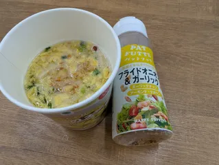 卵スープと85day 【85日目】カップの卵スープにパットフッテいれたらクルトンも入っているので食感も楽しみながら食べられる😋💕
