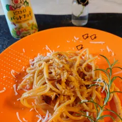 カルボナーラにパットフッテ 【46日目】自家製ベーコンのカルボナーラの味変にパットフッテ、フライドオニオン&ガーリックをかけました😋カルボナーラは途中で飽きる事があるので、味変にはピッタリでした💓