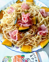玉ねぎかぼちゃ生ハムパスタ