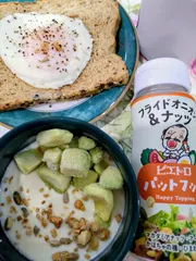 豆乳ヨーグルトや目玉焼きに70 【70日目】 自家製豆乳ヨーグルトや目玉焼きに