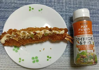エビフライに 【42日目】エビフライにパットフッテ。プリッ、サクッと、絶妙でした。