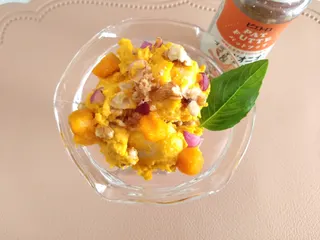 食べてみたいです〜🥰 スイーツ系サラダ❔ 白玉のつるんとした食感にパットフッテ✨美味しそうです💗