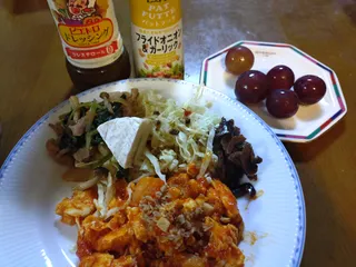 【75日目】エビチリにパットフッテ 【75日目】プリプリエビチリとカリッとパットフッテの食感がよかったです😊キャベツには、初和風しょうがドレッシングです